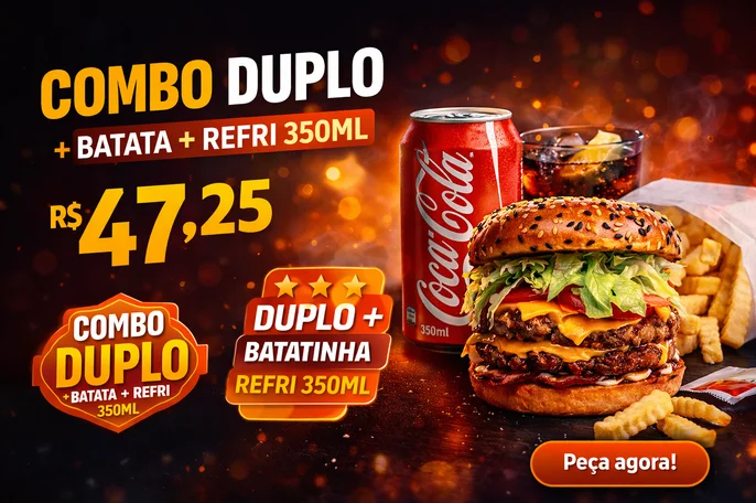 COMBO: DUPLO + BATATA + REFRI 350ML