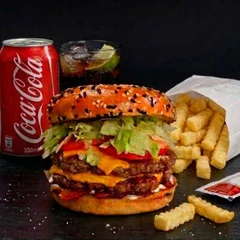 Experimente a combinação perfeita: Nosso suculento Duplo h (duas carnes de 120g) no ponto certo, coberto com queijo cheddar derretido, bacon crocante, alface fresca, tomate e picles , tudo isso em um pão artesanal com gergelim preto e branco. Acompanha uma porção individual de batatas Crinkle douradas e crocantes e uma Coca-Cola 350ml geladinha. O prazer em cada mordida.