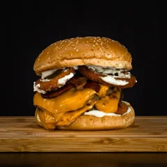 O Americano é a verdadeira definição de sabor! Com blend suculento, queijo derretido, bacon crocante, e um toque especial de molho da casa, ele é servido em um pão brioche macio. Uma explosão de sabores que vai te conquistar desde a primeira mordida!