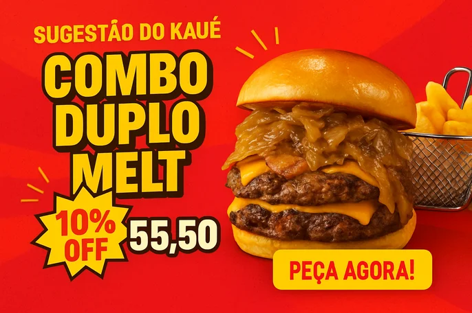 O 'Duplo Melt Burguer', uma tentação gourmet inigualável da nossa categoria 'Combos Premium', é uma verdadeira sinfonia de sabores. Este prato majestoso apresenta duas carnes artesanais de 120g cada, primorosamente temperadas e grelhadas à perfeição, garantindo uma suculência indescritível. Cada hambúrguer, deliciosamente confeccionado, é regiamente coberto com um manto de queijo cheddar derretido, conferindo uma profundidade extra de sabor e um toque de cremosidade luxuosa. Acompanha nossa esplêndida cebola caramelizada, que oferece um contraponto doce e sofisticado à pujança do queijo e da carne. E, é claro, o indispensável bacon, irresistivelmente crocante e saboroso, que acrescenta uma textura apaixonante ao conjunto. Tudo isso é delicadamente acondicionado em um pão de brioche macio e leve, que agrega um acabamento final perfeito a este prato indulgente. Um convite irresistível ao prazer gastronômico. Experimente e se deleite!