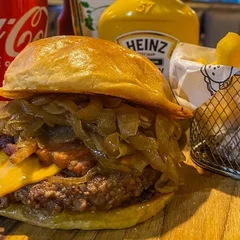 Suculento Burguer Artesanal de 120gr , queijo cheedar derretido , nossa maravilhosa cebola caramelizada, aquele Bacon que não pode faltar num delicioso pão de brioche leve e macio, acompanha bebida e batata.
