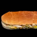 Pão de cachorro quente 24 cm , maionese caseira, queijo mussarela e alcatra em iscas acebolada.
