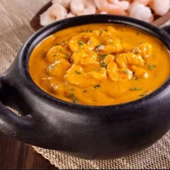 Bobó de Camarão, Tempero e Ingredientes Especiais. Acompanha: Arroz Branco, Cebolinha e Molho Pimenta. Obs: Apimentado.