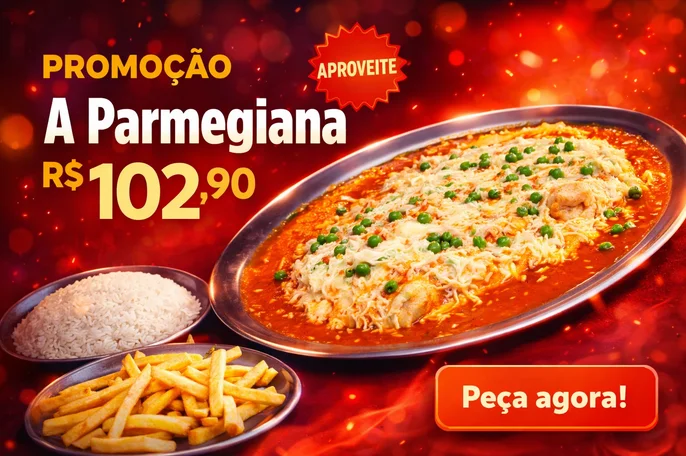 Filé Empanado, muçarela, molho ao Sugo ervilha e Parmesão Ralado. Acompanha arroz e fritas. Você pode escolher qual carne: Contra, Mignon, Frango ou Lombo
