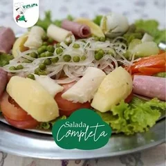 Alface, tomate, cebola, vagem, chuchu, batata cozida, ovo cozido, ervilha, palmito e presunto