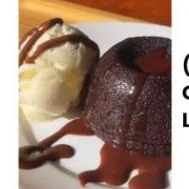 Bolo de chocolate quentinho com interior cremoso, sorvete de creme e calda de avelã. (Somente consumo no local).