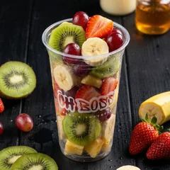 Copo de 400ml de Frutas Picadas - Morango, Manga , Uva , Bananas, Manga e Kiwi - Escolha 4 .