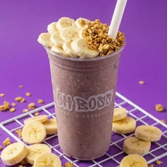 Nosso delicioso açaí batido em forma de smoothie: bem cremoso, geladinho, finalizado com cobertura Fini Banana, trazendo aquele sabor de bala de banana doce e divertida que conquista no primeiro gole. Dica do Boss: Pode adicionar leite condensado ou transformar em versão alcoólica com Vodka Absolut ou licor Balena.