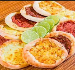 5 Queijo com Milho, 5 Calabresa, 5 Carne, 5 Queijo.
