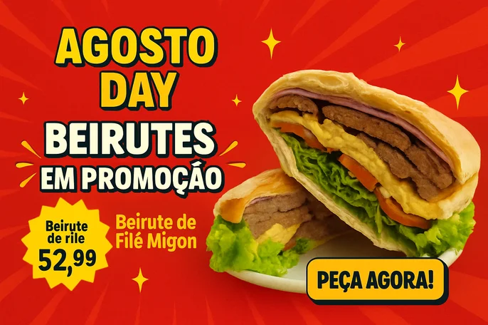 Pão Sírio assado a baixa temperatura com lascas de parmesão, molho especial da casa, maionese, filé mignon em cubos temperado com sal grosso, ovos, molho barbecue, catupiry original, pimentão em cubos, cebola, alface, tomate e coberto generosamente com Mussarella.