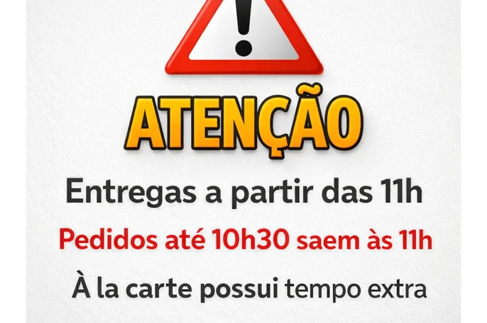 ⚠️ ATENÇÃO Entregas a partir das 11h. À la carte: até +30 min no prazo.