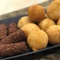 4 unidades de bolinho de bacalhau importado legítimo! Agora bem maior, uma entradinha de presença! Aproximadamente 25g