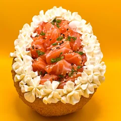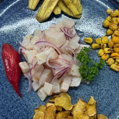 Clássico prato peruano, destacado por seu frescor, sabor e autenticidade, aqui você pode adaptar da maneira que mais combina com voce. Basicamente, peixe, limão, cebola roxa e especiarias.