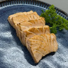 Sashimi de Salmão - finamente fatiado em cinco porções generosas. Este prato apresenta filé de salmão fresco, meticulosamente selecionado para garantir a mais alta qualidade. Acompanhado por gengibre, que equilibra perfeitamente o sabor do peixe, proporcionando uma experiência gastronômica autêntica e refinada. Um deleite para os apreciadores da culinária japonesa.