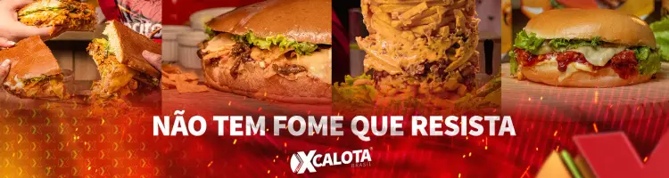 Nossos lanches são feitos com ingredientes frescos e selecionados. Os ingredientes do Calota Calabresa são: 3 hambúrgueres de carne bovina, calabresa, 3 ovos, 3 fatias de presunto, 3 fatias de queijo, milho, tomate, alface, ketchup, mostarda e a maionese do X Calota.