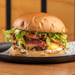 Pão macio com carne suculenta de 110g, mussarela bem derretida, bacon crocante e o ovo no ponto certo deixando o burger ainda mais cremoso e irresistível. Finalizado com salada fresquinha de alface,tomate, milho e o toque especial do nosso molho da casa. Serve bem 1 pessoa.