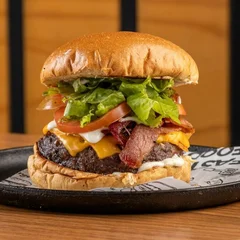 Pão de brioche macio, com bife suculento de 110g, duplo queijo cheddar bem derretido e bacon crocante trazendo aquele sabor irresistível. Finalizado com alface e tomate fresquinhos e o nosso molho especial da casa. Serve 1 pessoa.